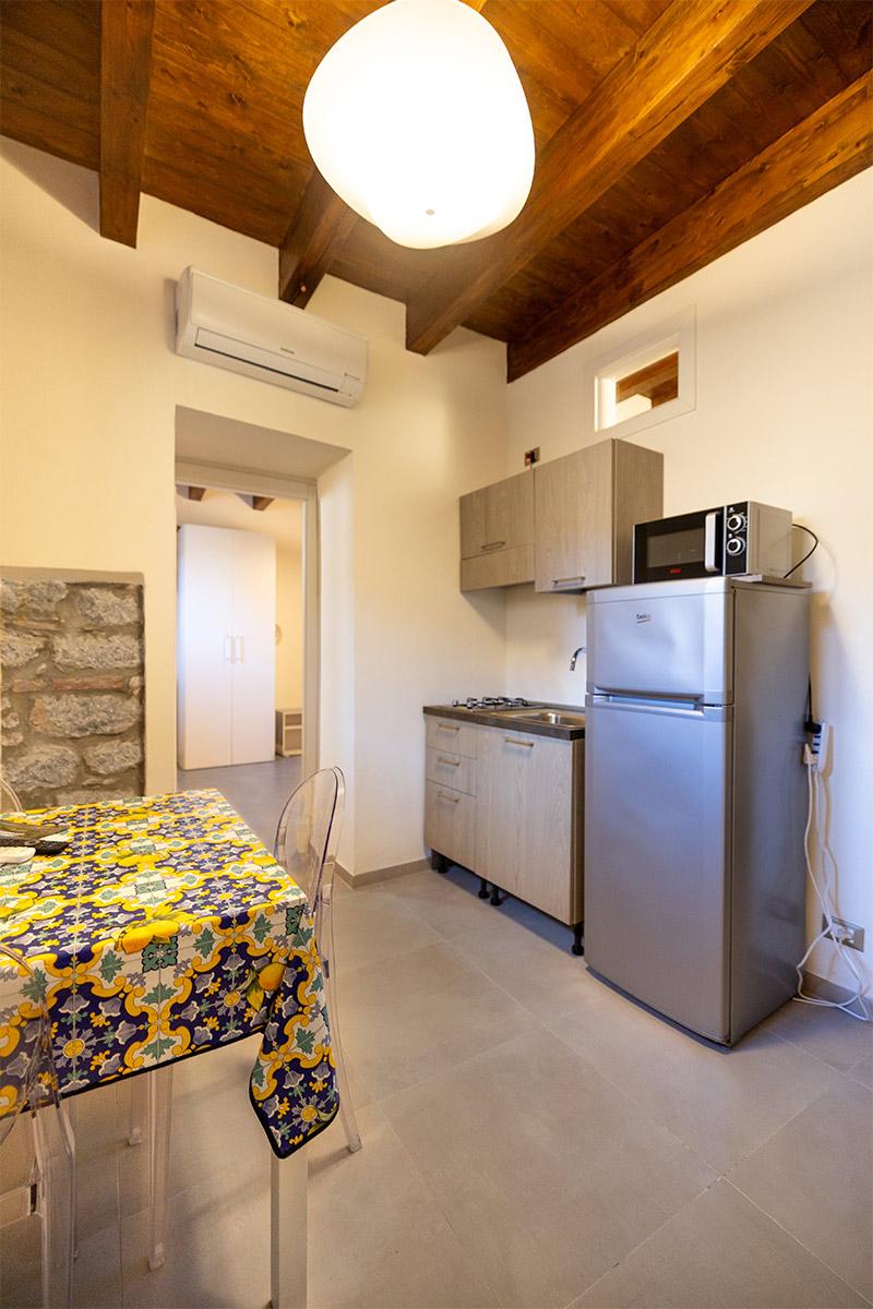 L’appartamento interamente climatizzato e dotato di tutto l’occorrente per farti sentire a casa anche in vacanza si divide in: comoda e spaziosa camera da letto matrimoniale dotata di climatizzatore e termosifone, cucina moderna attrezzata e climatizzata, ed in fine un grazioso ed elegante bagno con ampio piatto doccia, asciugamani, asciugacapelli e termo-arredo a muro.